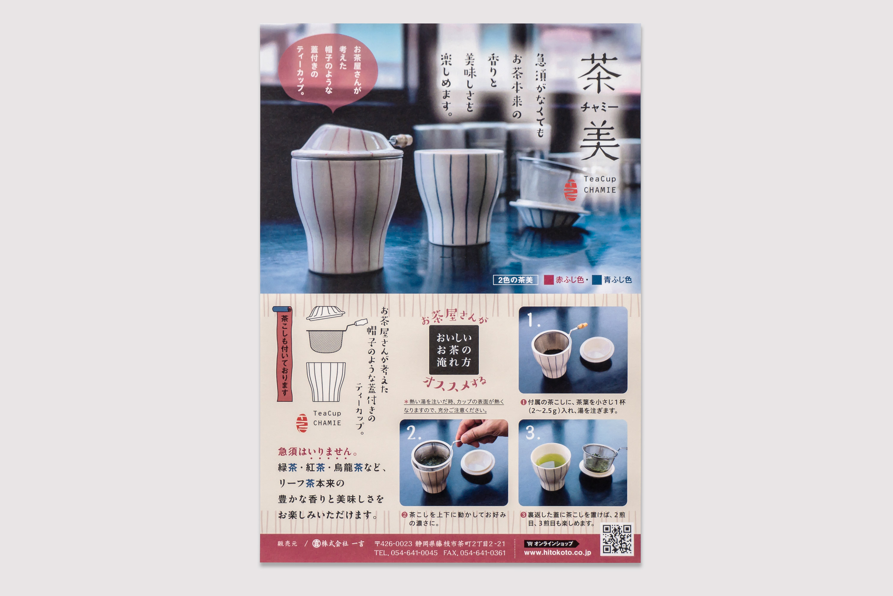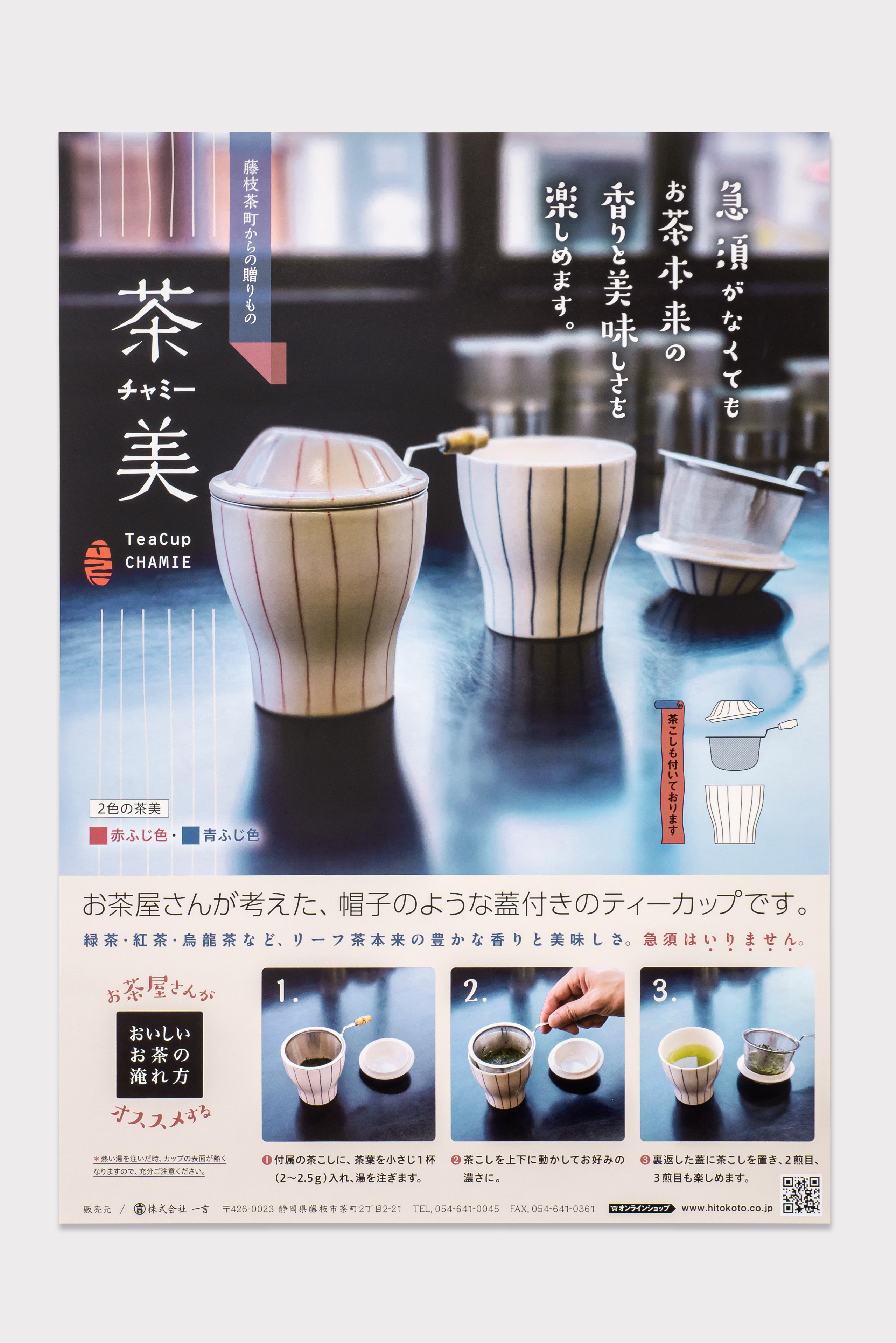 一言 TeaCup 茶美(チャミー) Hitokoto TeaCup CHAMIE 2016 ここにテキストが入ります。 パッケージラベル / ポスター / フライヤー 2016.08 - 2016.10 株式会社 一言 http://www.hitokoto.co.jp