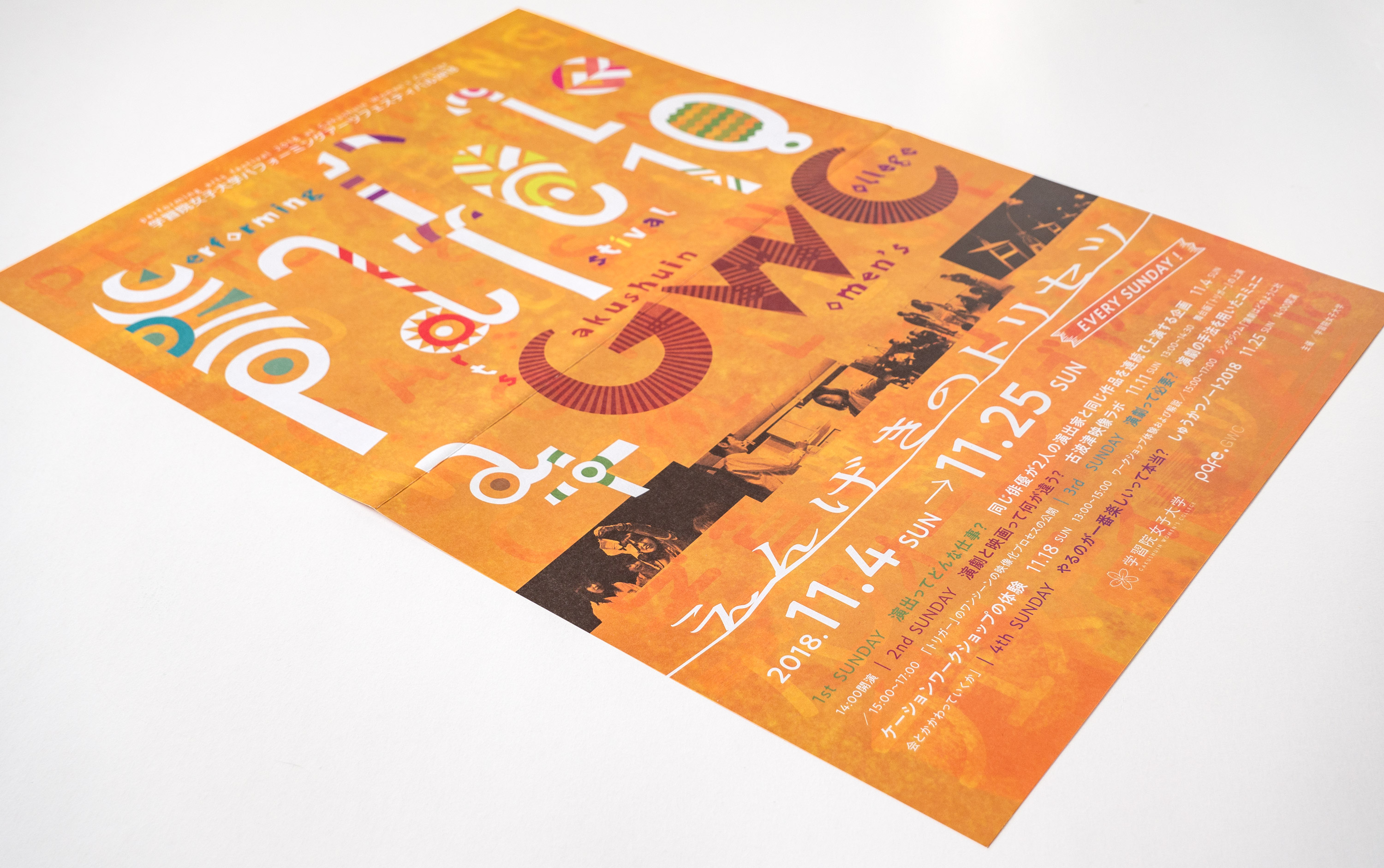 趣向を凝らした切り口や手法で演劇を体験する実験的プログラムで構成された、学習院女子大学パフォーミングアーツフェスティバル2018のデザインワーク。