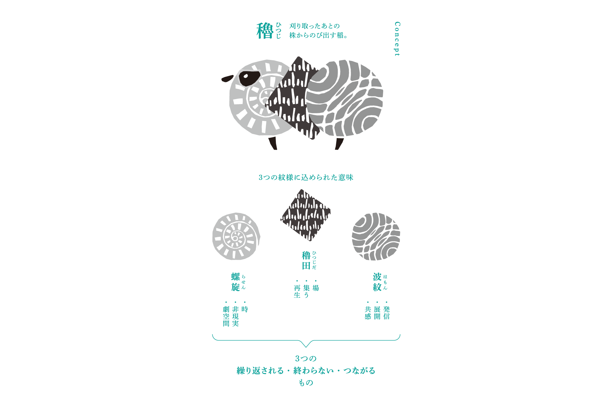 ロゴマークは、コンセプトとなる「穭」を含めた3つの要素に顔・脚を付属し、「羊」を模りながら「穭」を表現しました。